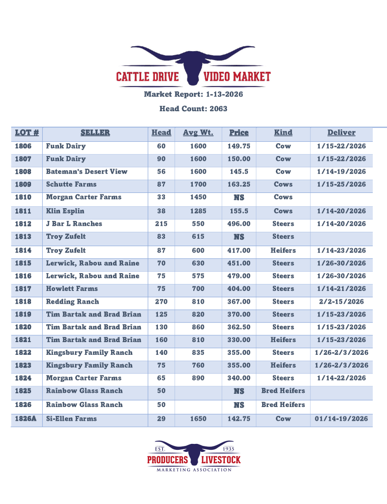 Market Report USDA Market reports Historical Market Reports 1-13-2612-16-2512-9-2512-2-2512-1-25 Sheep11-25-2511-18-2511-11-2510-21-2510-14-2512345>>